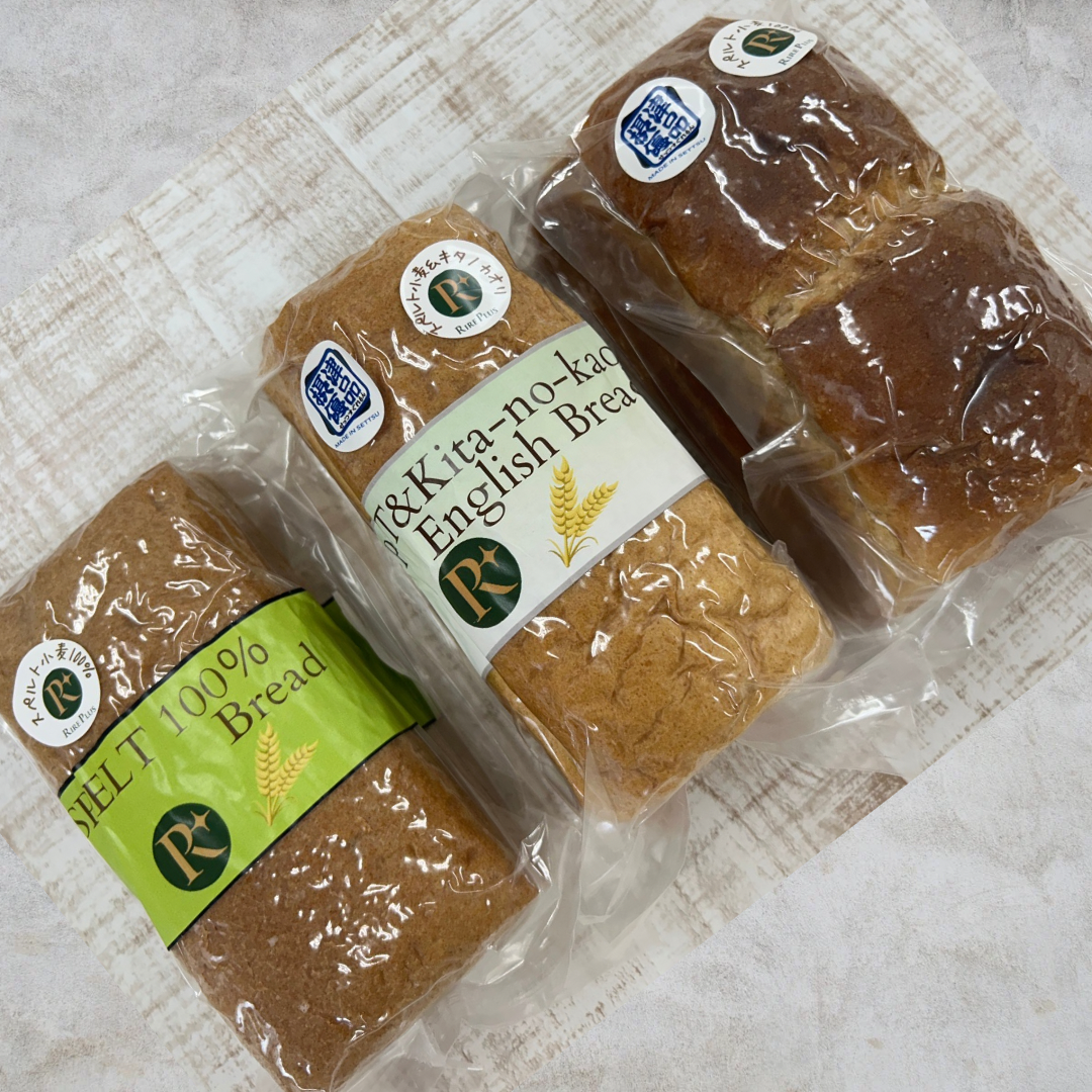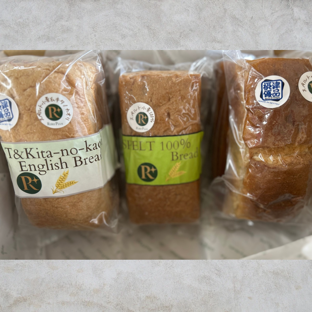 スペルト20%山食とスペルト100%ふた山に全粒粉100%ブレットをセットしました。