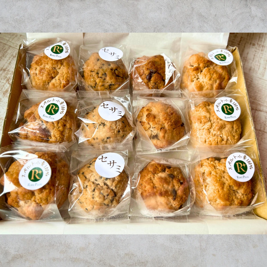 原材料:小麦粉(スペルト全粒粉(北海道産))、牛乳、オリーブオイル、砂糖、ごま、全脂粉乳、食塩/ベーキングパウダー