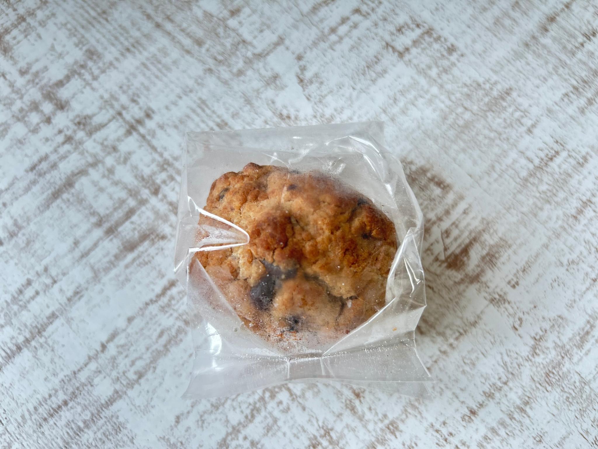 原材料:小麦粉(スペルト全粒粉(北海道産))、牛乳、オリーブオイル、砂糖、70%クーベルチュール、全脂粉乳、食塩/ベーキングパウダー、乳化剤