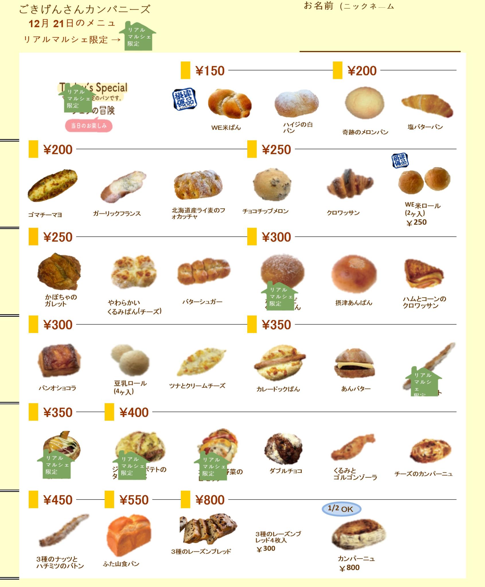 ※スペルト古代小麦のぱんをご希望の方は、下記のリストからお選びください。